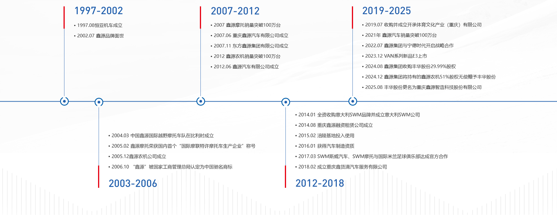 東方鑫源集團有限公司(簡稱鑫源集團)始創于1997年,是一家涉及工業制造、金融服務、智慧出行等多個領域的大型企業。經過多年的發展,現在形成以汽車、高端摩托車、農機通機、智慧出行+融資租賃的4+1產業融合發展平臺。并以重慶涪陵制造基地、重慶高新區制造基地、越南制造基地、SWM意大利制造基地+重慶涉外商務區總部的4+1地域布局,現有員工1萬余名。