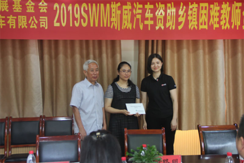 2019年9月10日,是第三十五個(gè)教師節(jié),在全社會向老師致敬的同時(shí),重慶市璧山區(qū)福祿小學(xué)校的老師收到了一份特殊的教師節(jié)禮物。在2019SWM斯威汽車資助鄉(xiāng)鎮(zhèn)困難教師資助金發(fā)放活動(dòng)中,來自璧山區(qū)福祿小學(xué)校的受助教師代表伍夏紅老師,領(lǐng)取了5000元的“SWM斯威汽車鄉(xiāng)鎮(zhèn)教師專項(xiàng)教育扶持資金”。