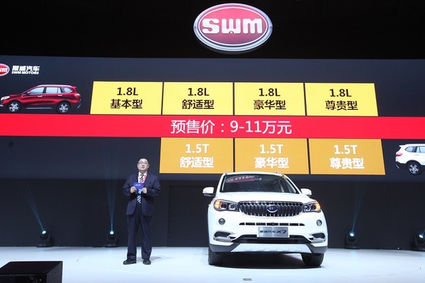 首款產品SWM斯威X7亮相,售價9—11萬元