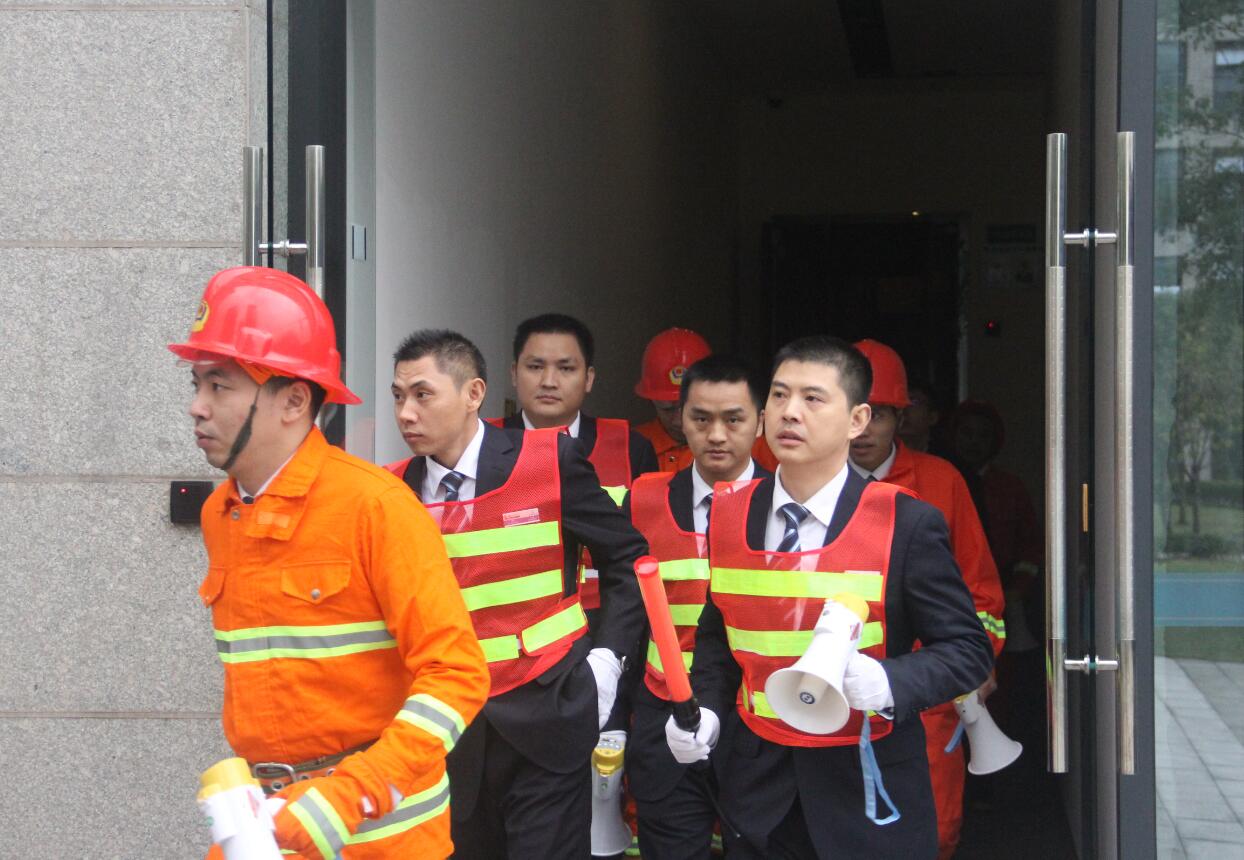 按照應急預設程序,各公司消防安全員迅速到位,開始有序組織全體員工從應急通道疏散。