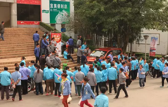 密密麻麻的一大幫工人從各車間幾乎是沖出來的。
